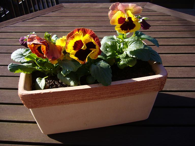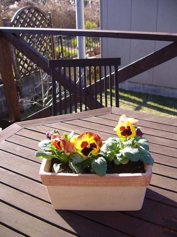 デッキのテーブル位には お花良いよねっ と