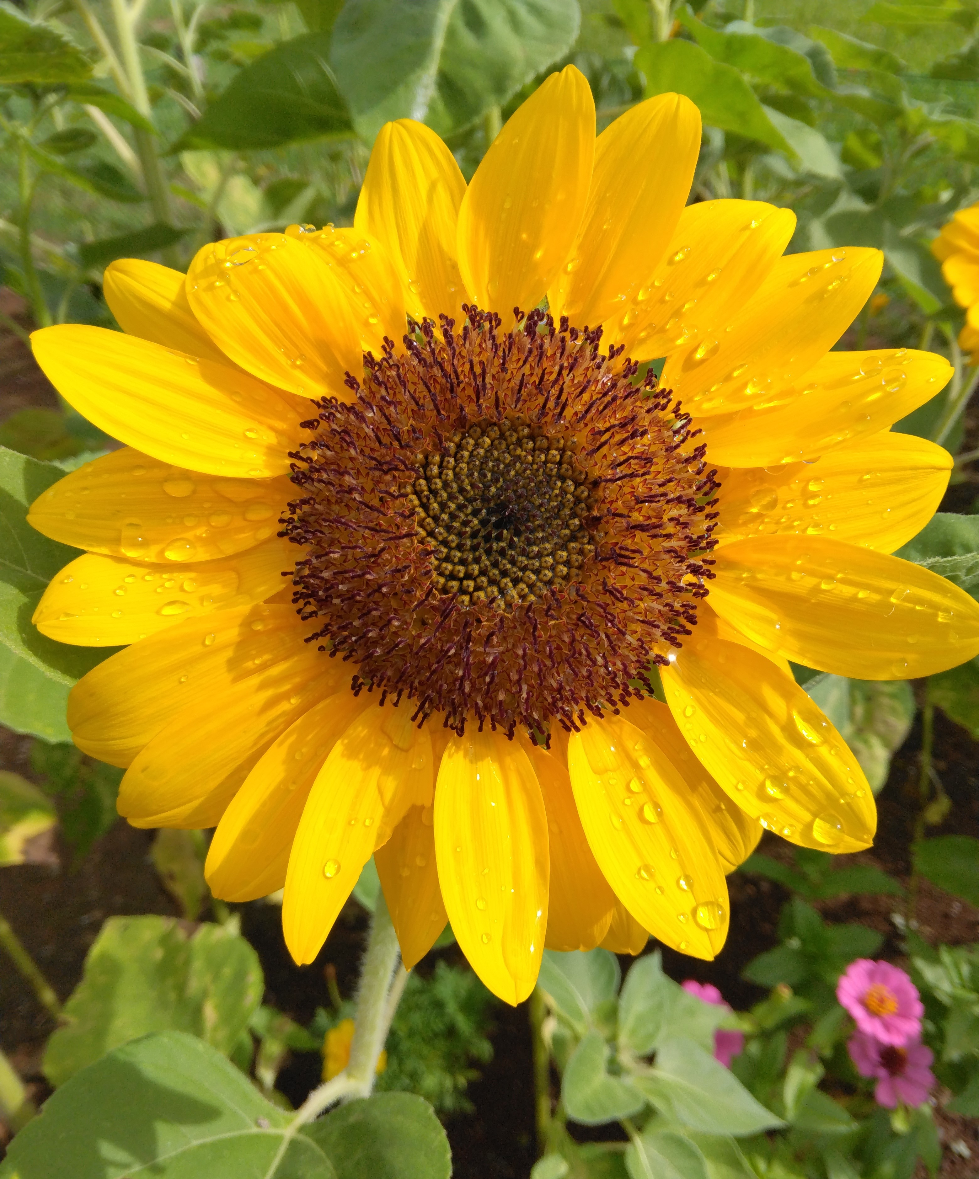 畑のヒマワリが嬉しそう
