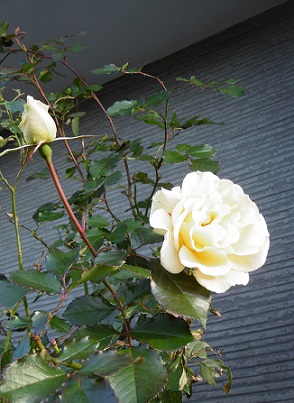 寒い中玄関で出迎えてくれる黄色のバラ