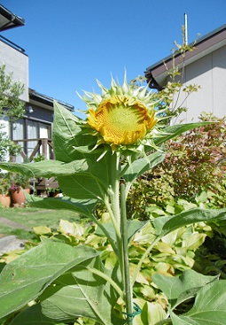プランターのひまわり今日はこんな感じ